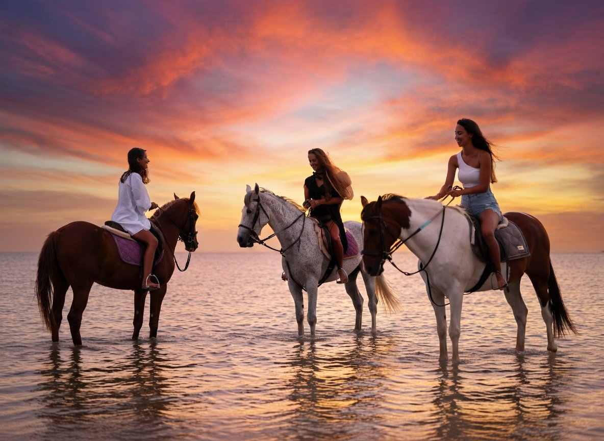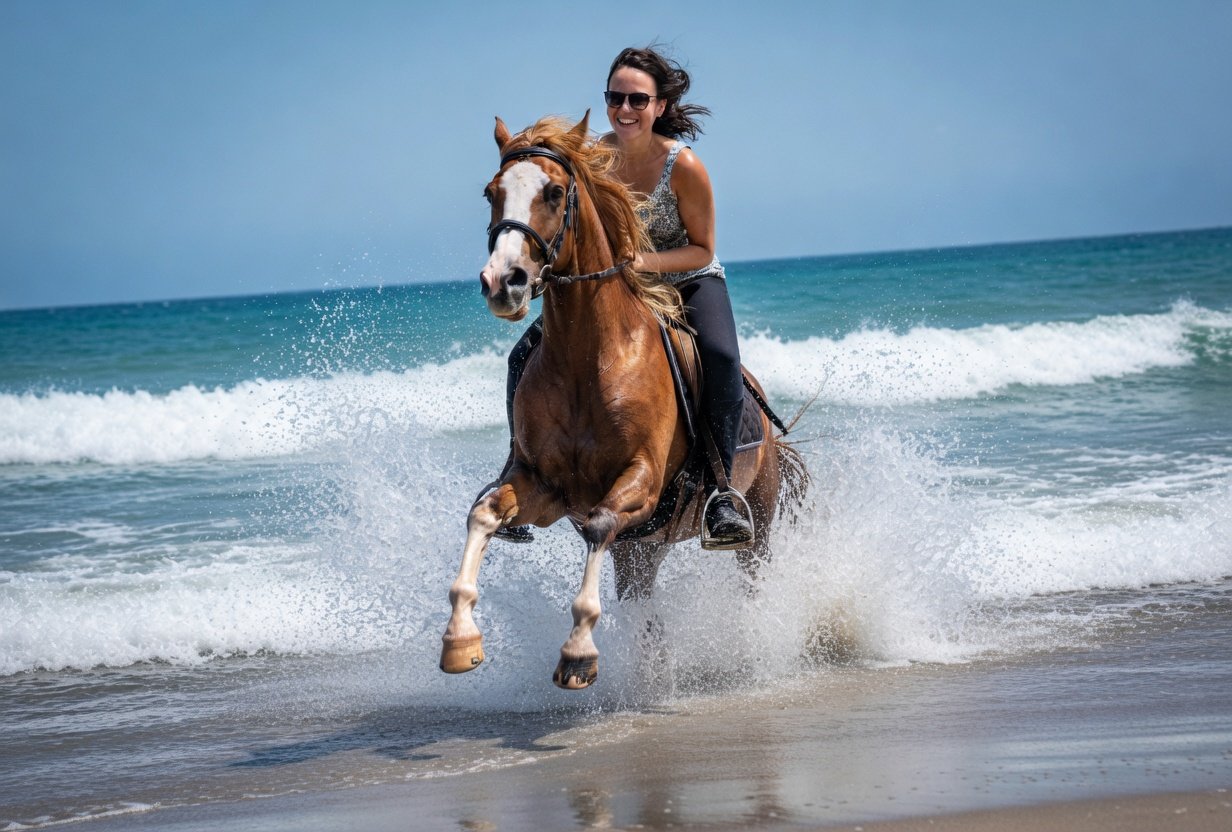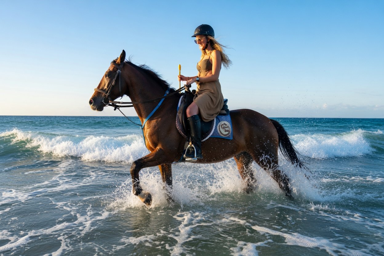 A truly unique experience — ride on the beach and swim with horses in the sea for unforgettable memories.